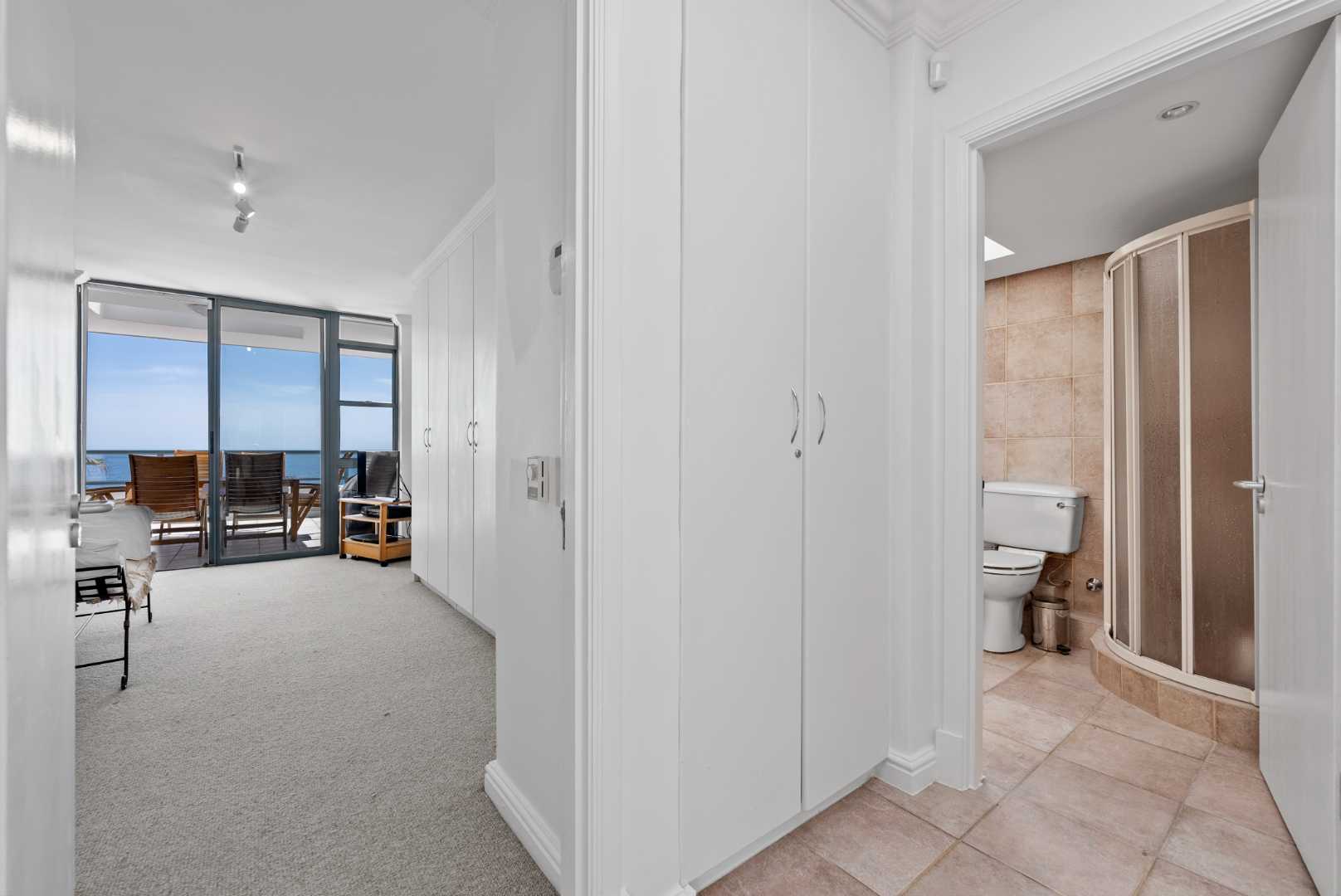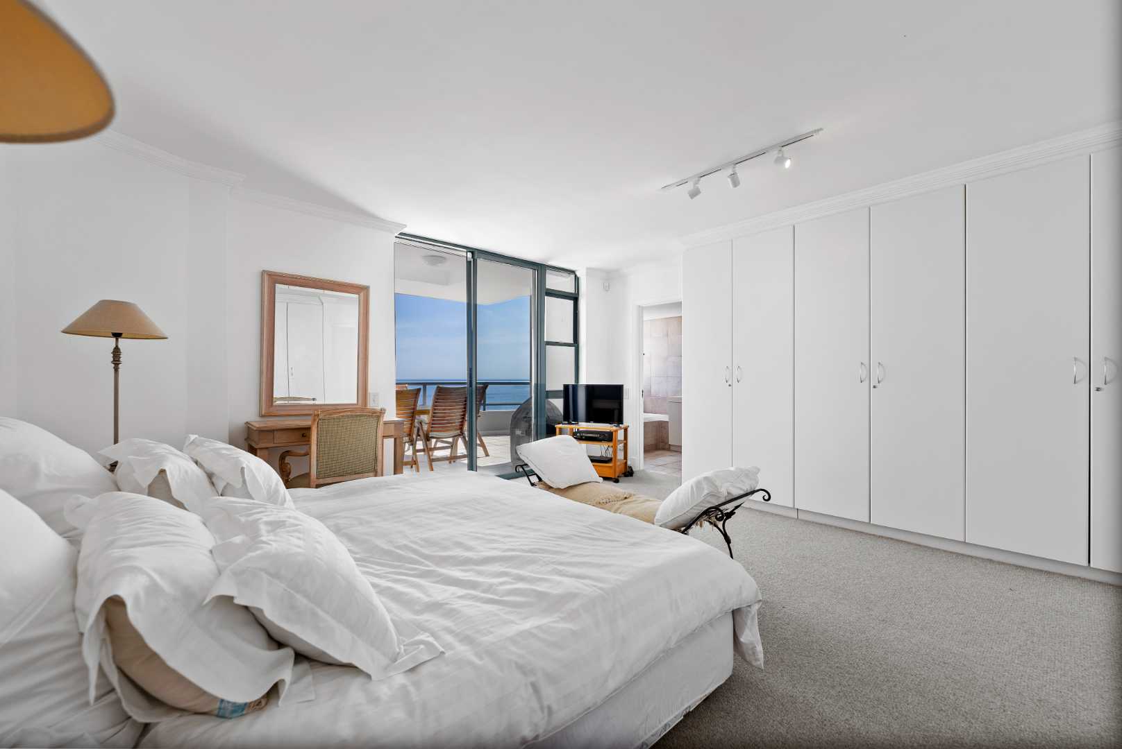 The spacious layout features two good-sized balconies—one off the main bedroom and another adjacent to the living area.