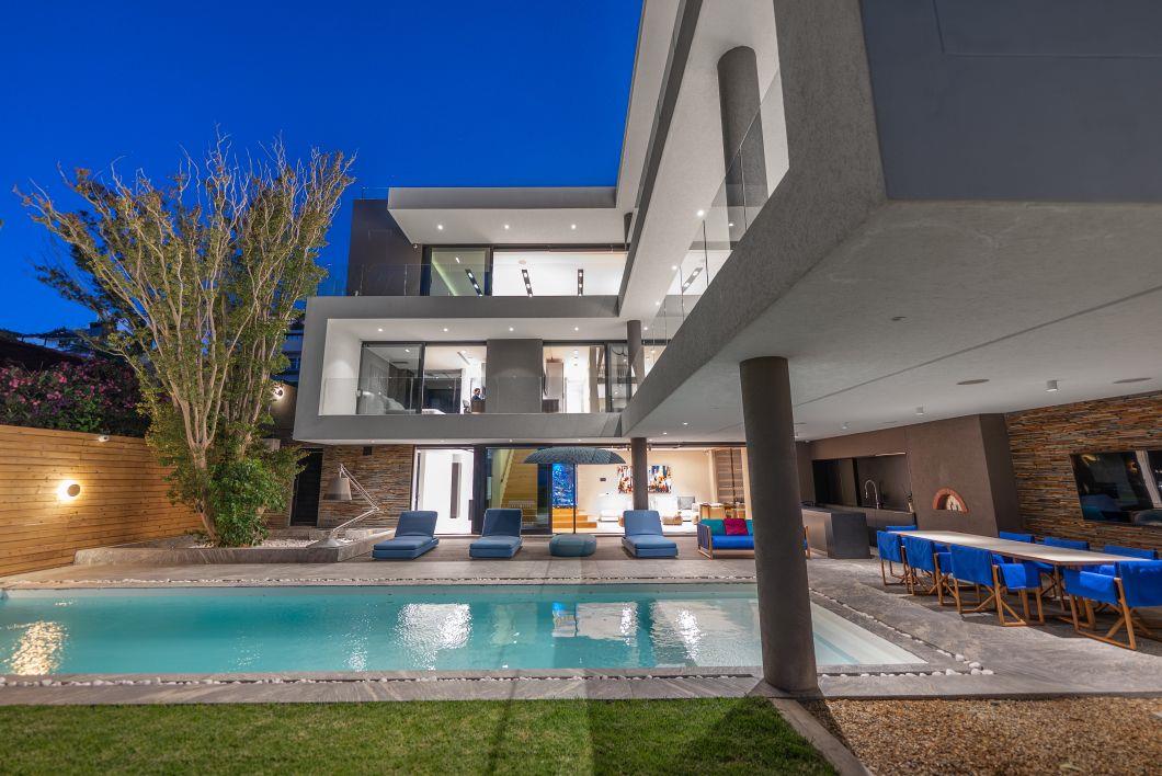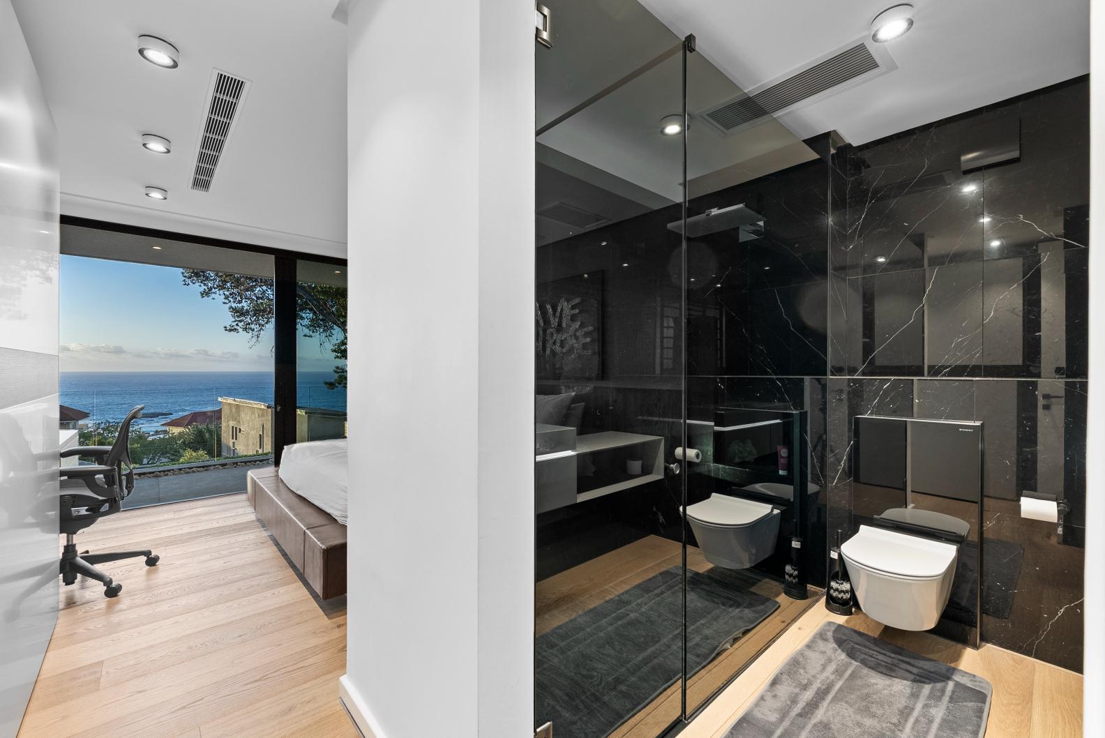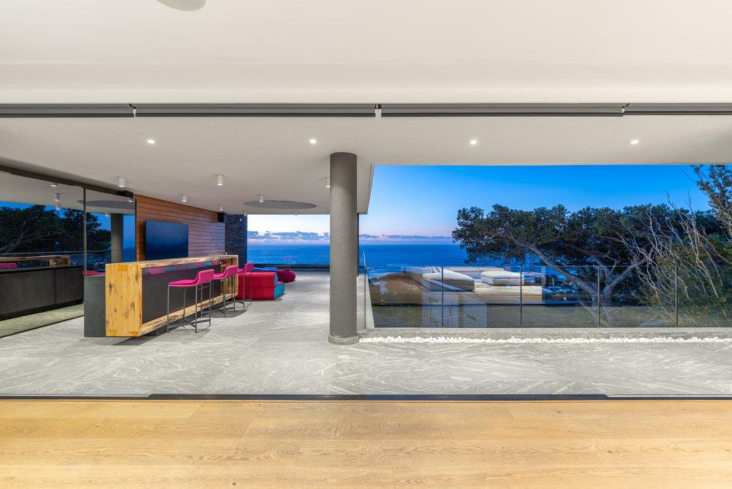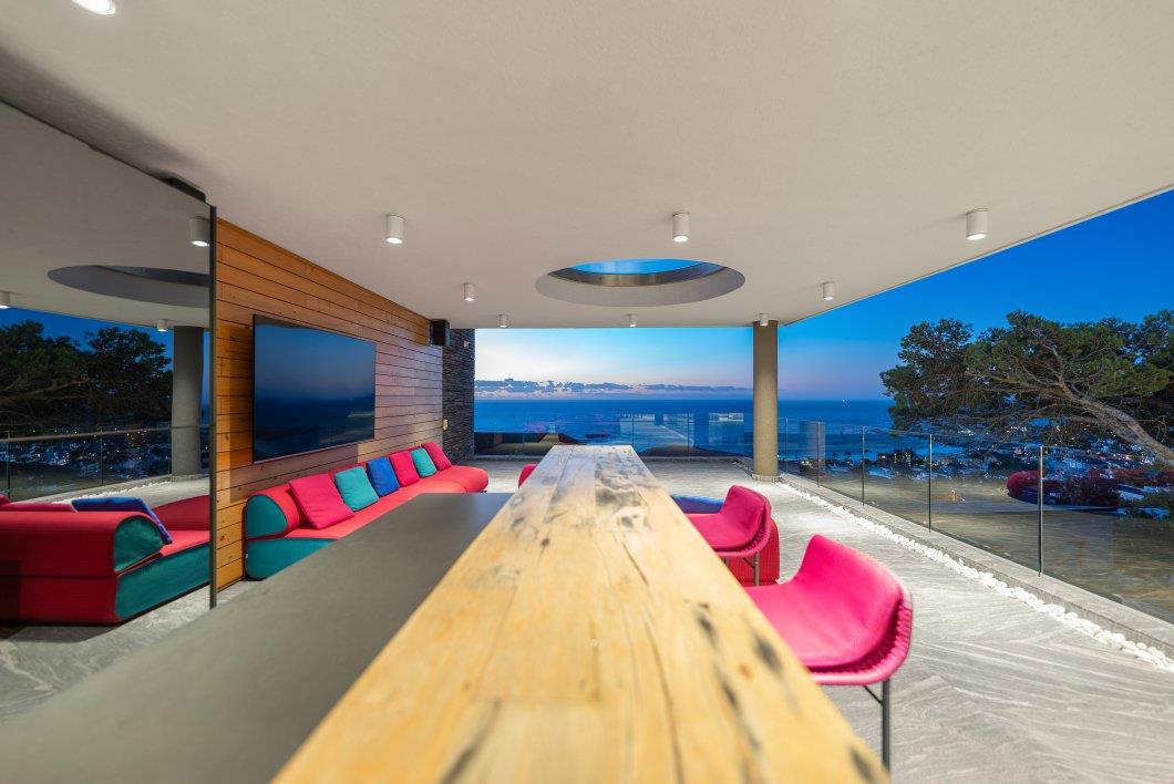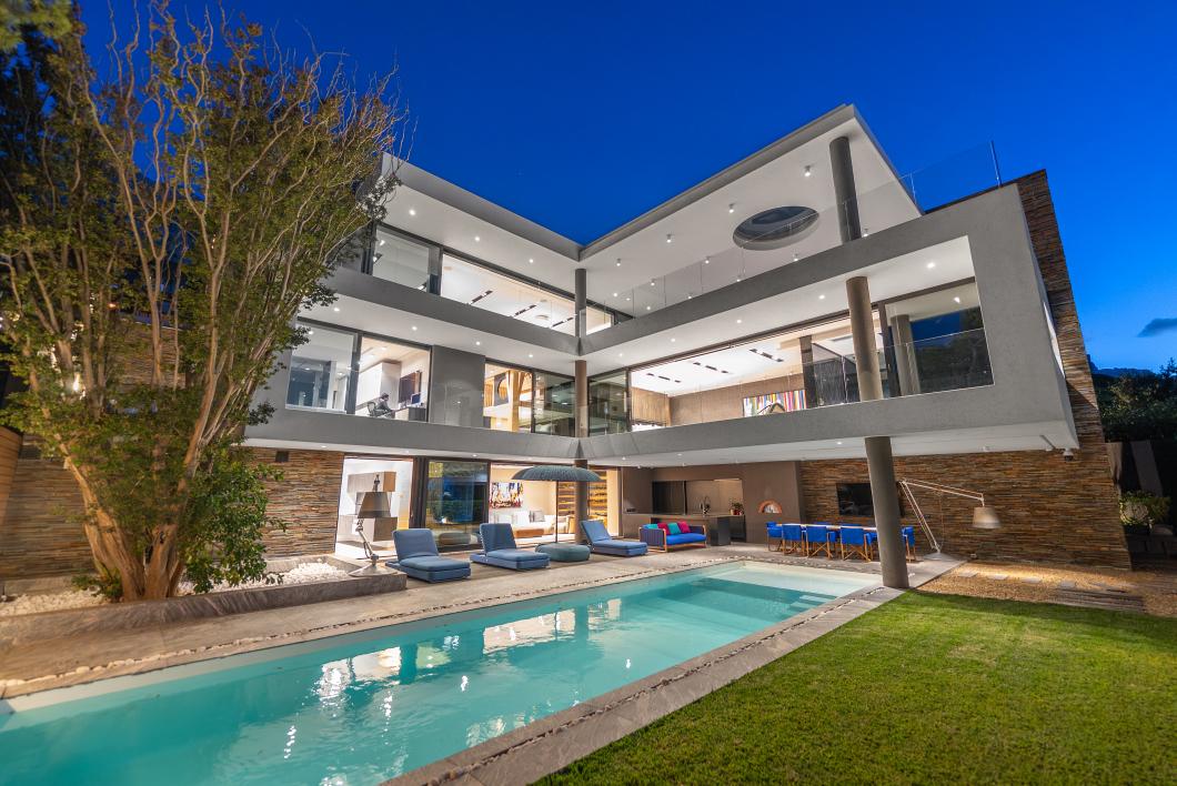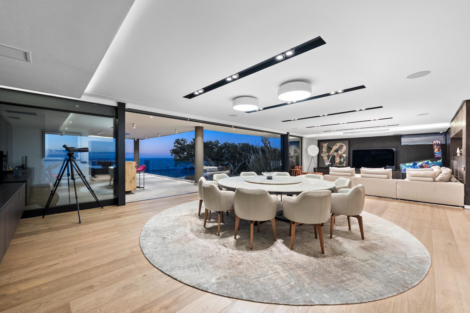 PRICE INCLUDES V.A.T This striking contemporary villa is defined by wrap-around glass walls that frame sweeping sea and mountain views, creating a seamless connection between refined interiors and the surrounding landscape.