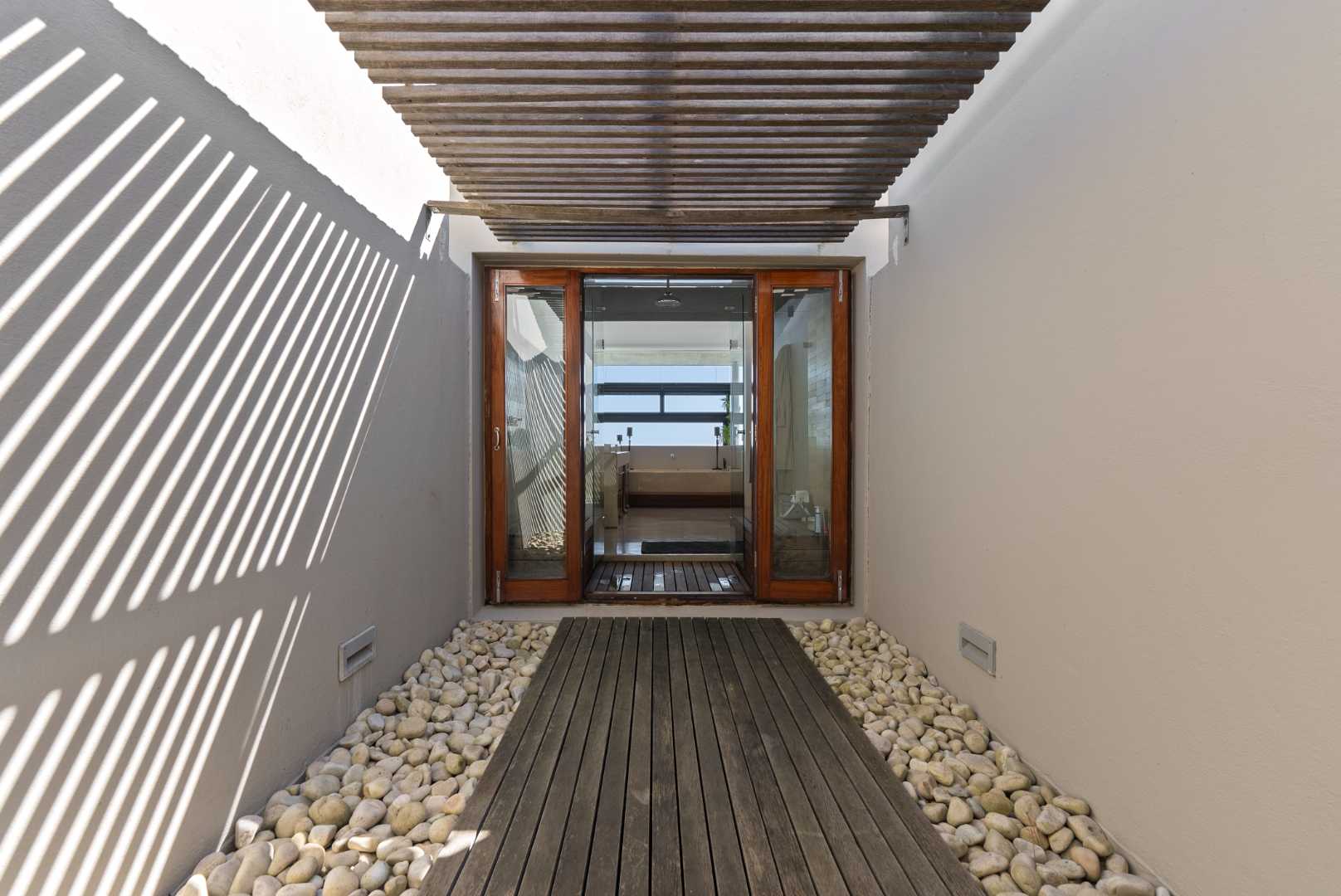 Primary suite retreat with en-suite courtyard shower and steam room