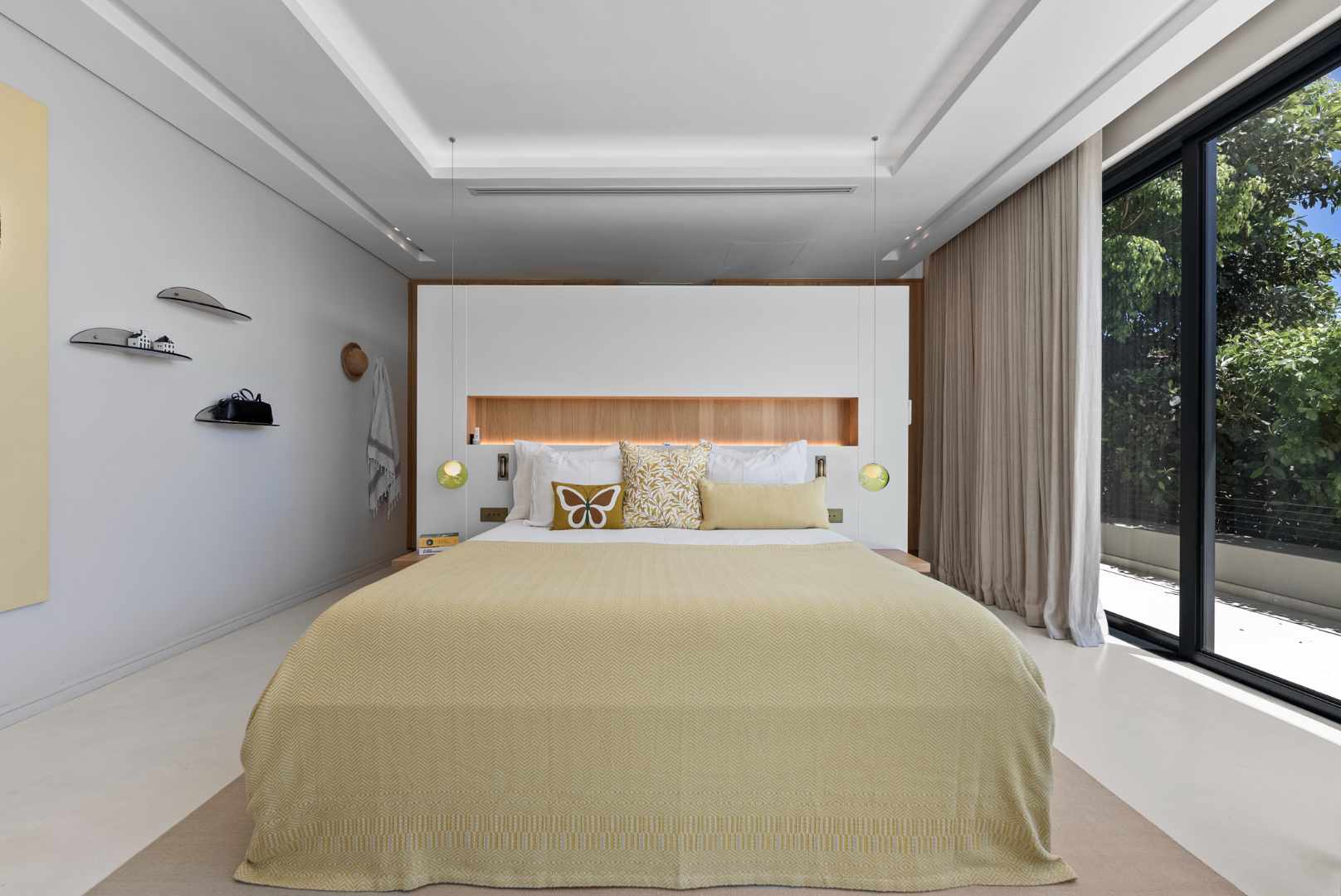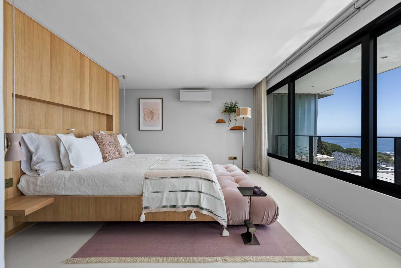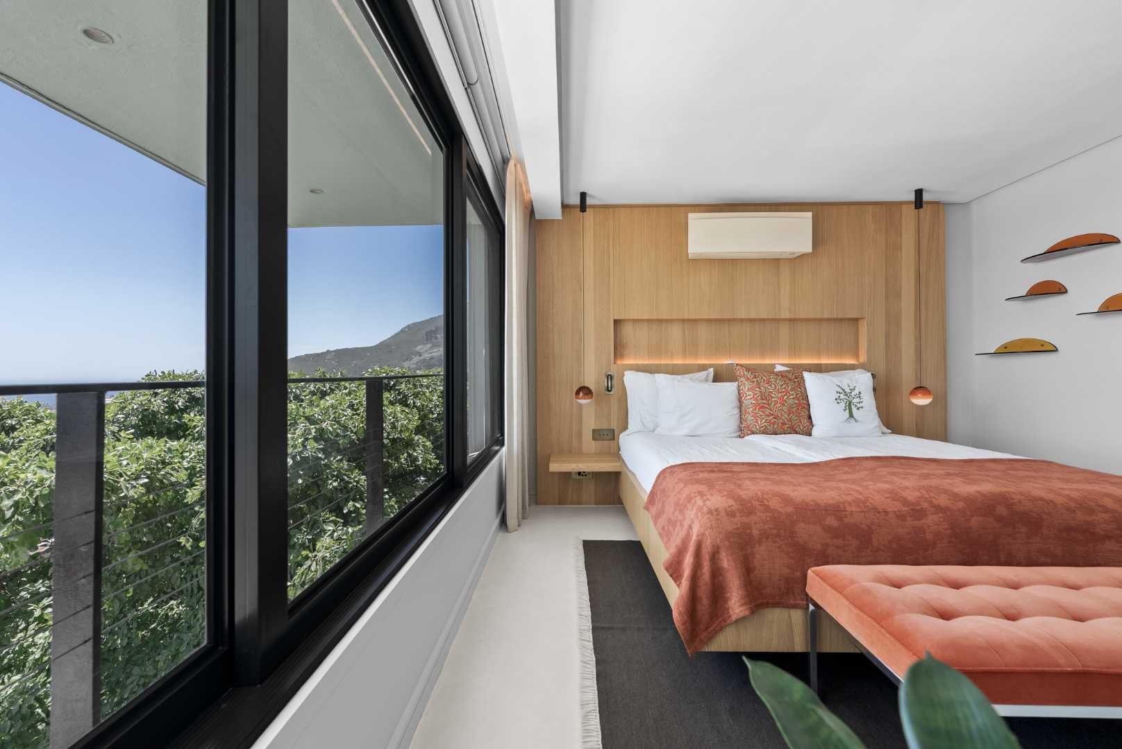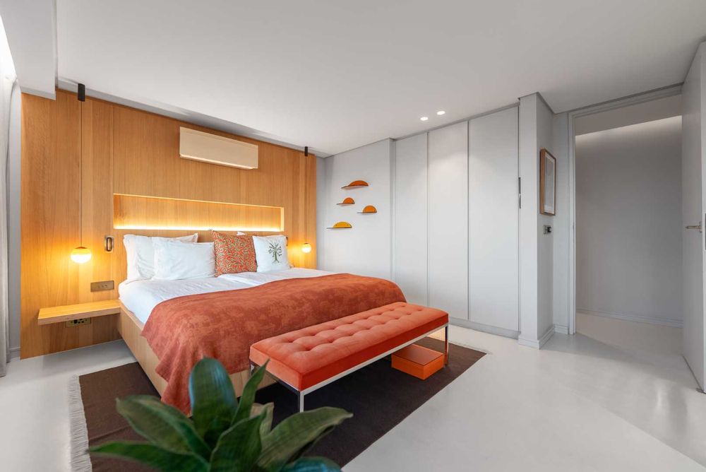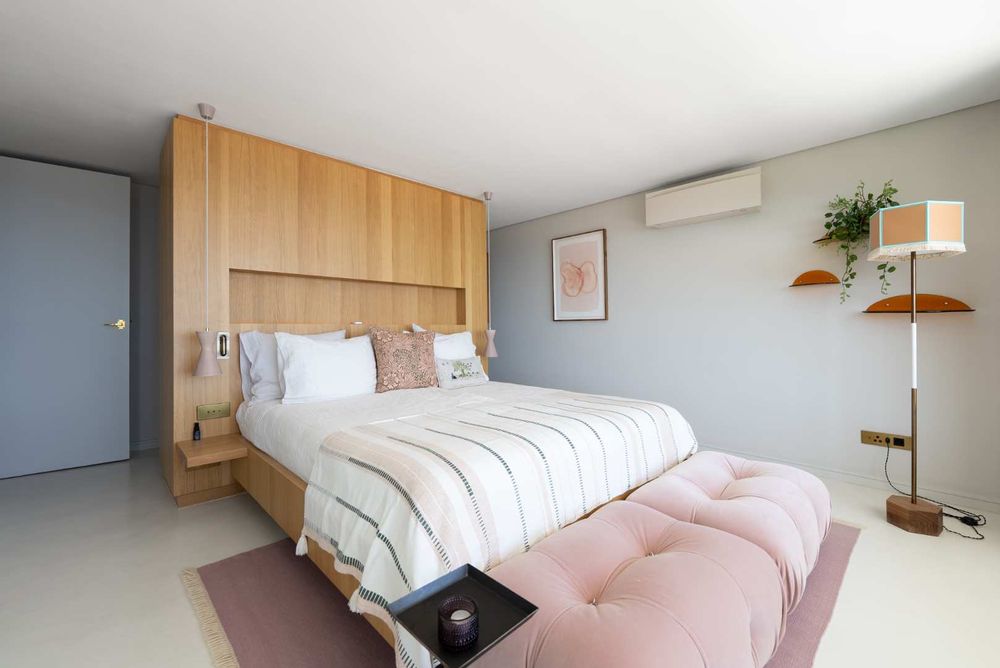 Comfort and control are central to the home’s design: air-conditioning and underfloor heating run across both levels — with Lumin 8 lighting automation, dimmable fittings, electric blinds, and automated sunscreens with full sunblock curtains offering complete flexibility. Dual-standard USB ports (South African and European) are positioned at every bedside.