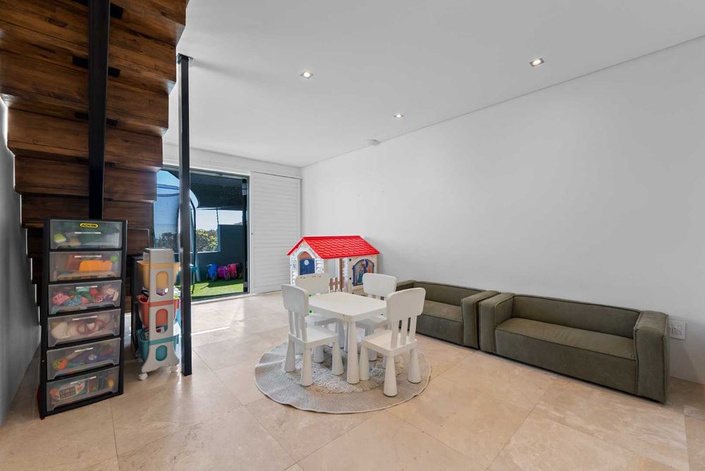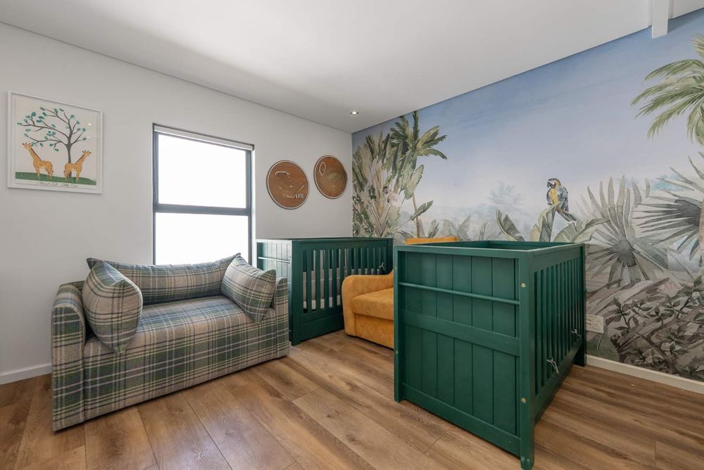 Upstairs, the main bedroom enjoys fantastic views, a full en-suite bathroom, and plenty of built-in cupboards. Two additional bedrooms are located on this level — including one with a wrap-around balcony and another with a Juliet balcony — together with a shared lounge/play area, a bathroom, and a flexible room that currently serves as a gym.