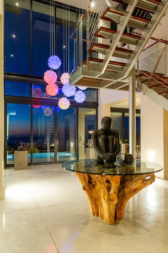 Crafted by internationally acclaimed London and Hong Kong–based architect Pedro Roos, the home is a masterclass in contemporary elegance. Soaring ceilings, expansive walls of glass, and clean, refined lines create a seamless dialogue between interior and exterior, framing the ocean, the dramatic Twelve Apostles, and the iconic Lion’s Head in every direction. Natural light flows effortlessly, bathing each space in a gallery-like serenity that is both grand and profoundly tranquil.